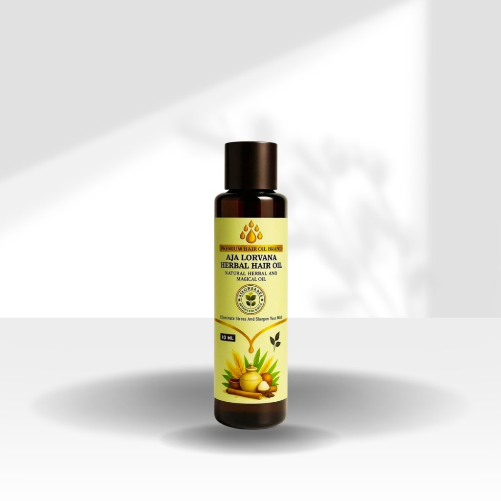 AJA LOKVANA Magical Herbal Hair Oil combines powerful herbs and pure natural oils to deliver fast growth, reduced hair fall, and deep scalp nourishment. Its silky, non-sticky formula repairs damage, boosts shine, smooths frizz, and strengthens every strand from root to tip. 100% herbal, chemical-free, and safe for all hair types — it gives your hair the rich, natural care it truly deserves.